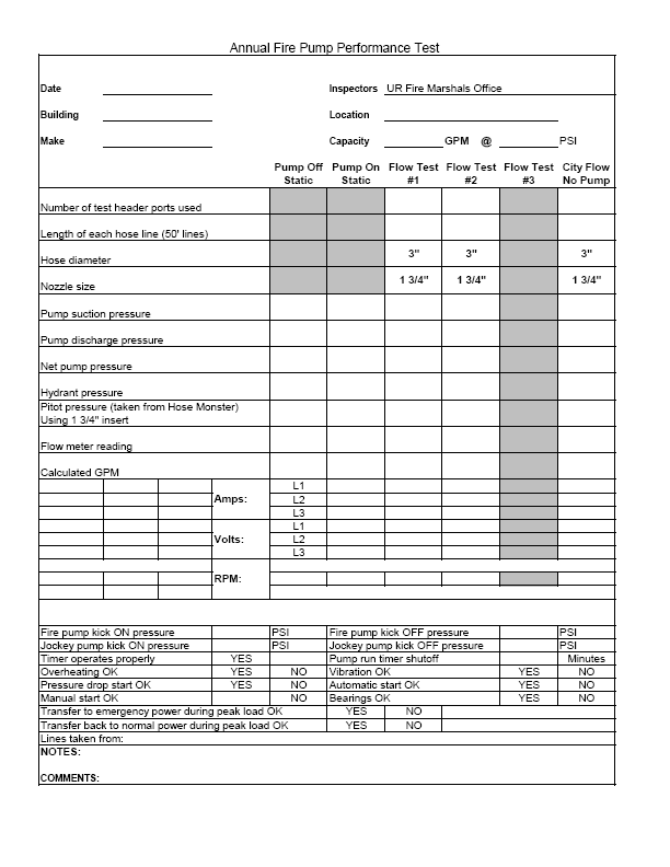All information obtained will be returned to the Building Fire Marshal for further calculation and graphing of the fire pump test results.