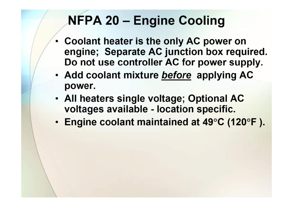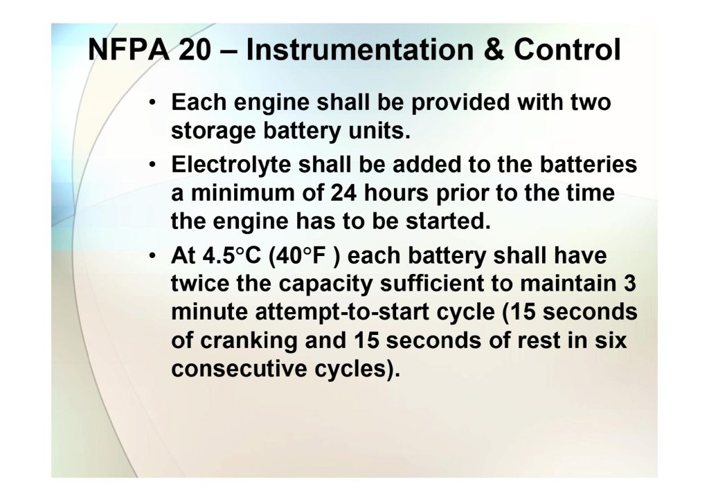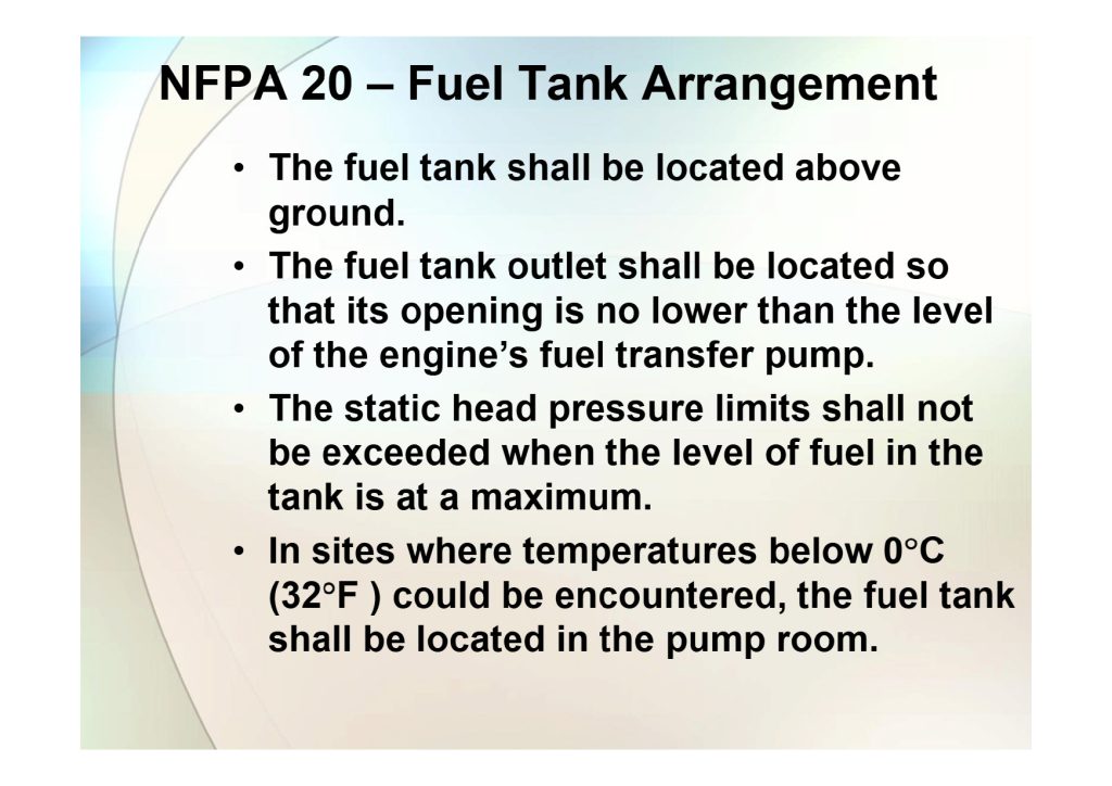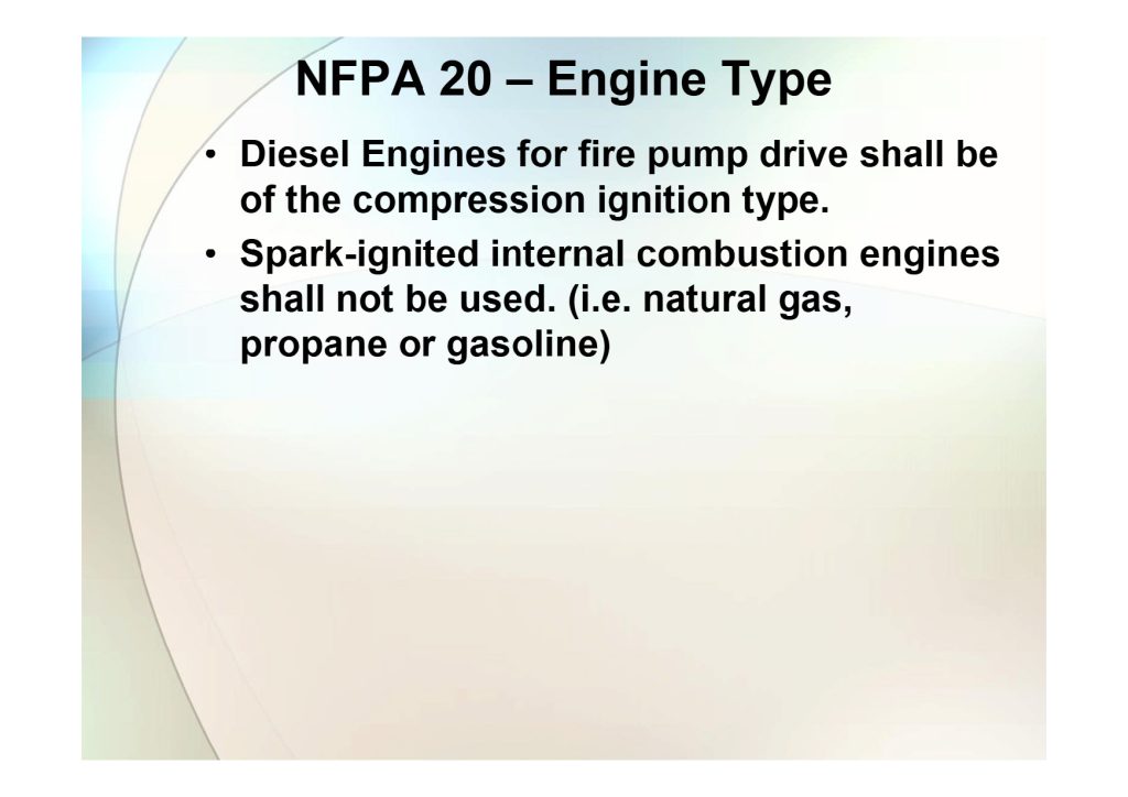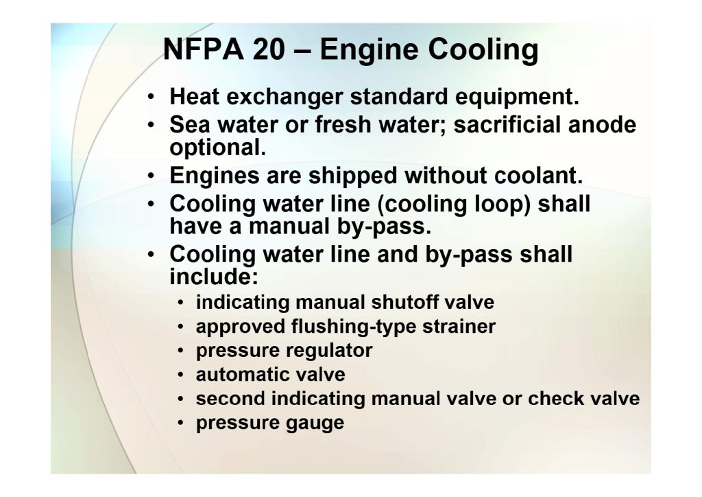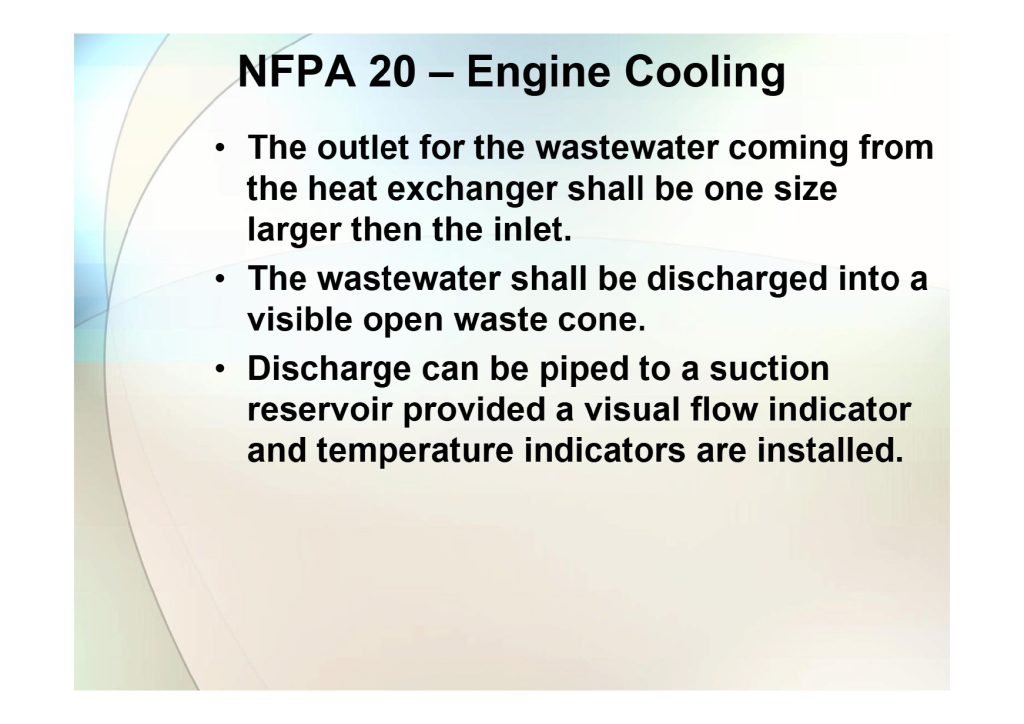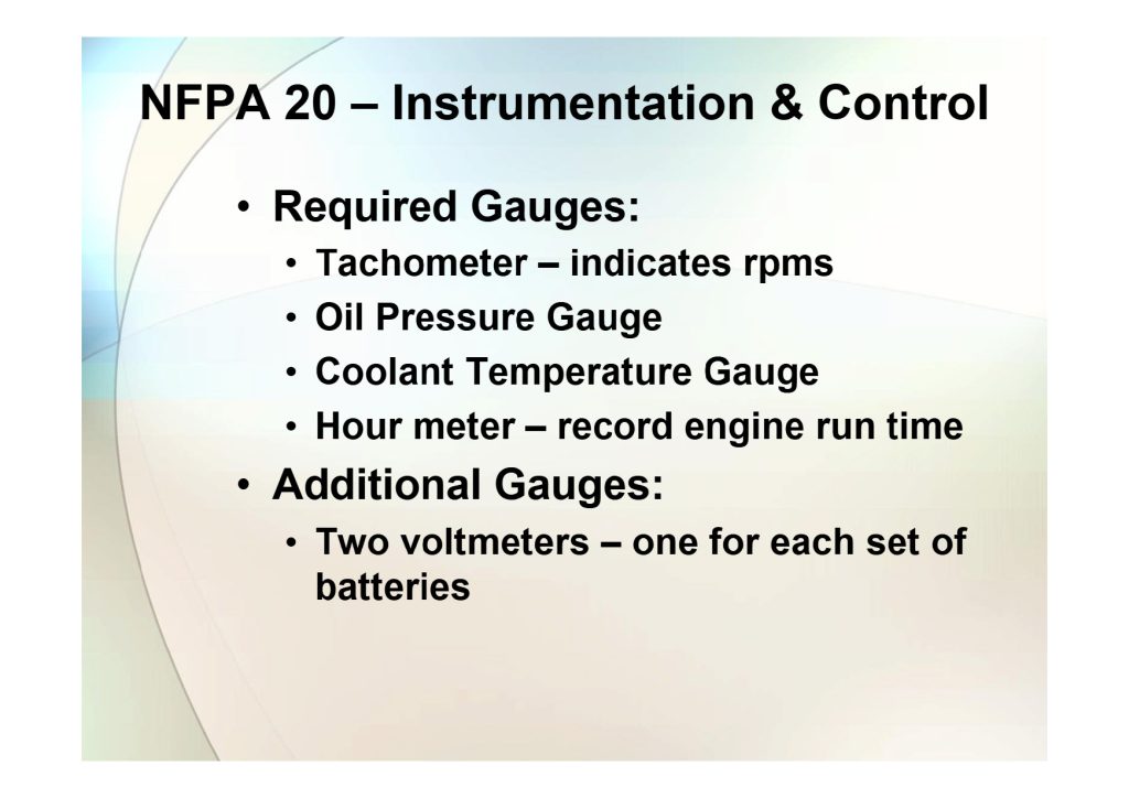 The National Fire Protection Association (NFPA) Standard 20 sets the guidelines for the installation of stationary fire pumps. Its goal is to ensure:
