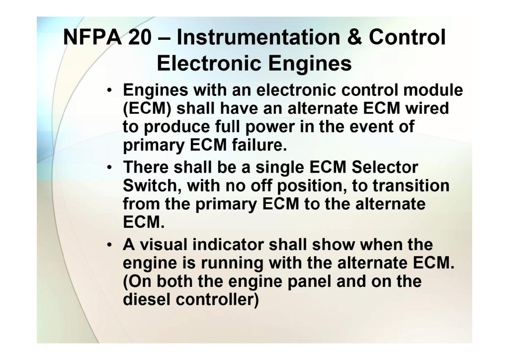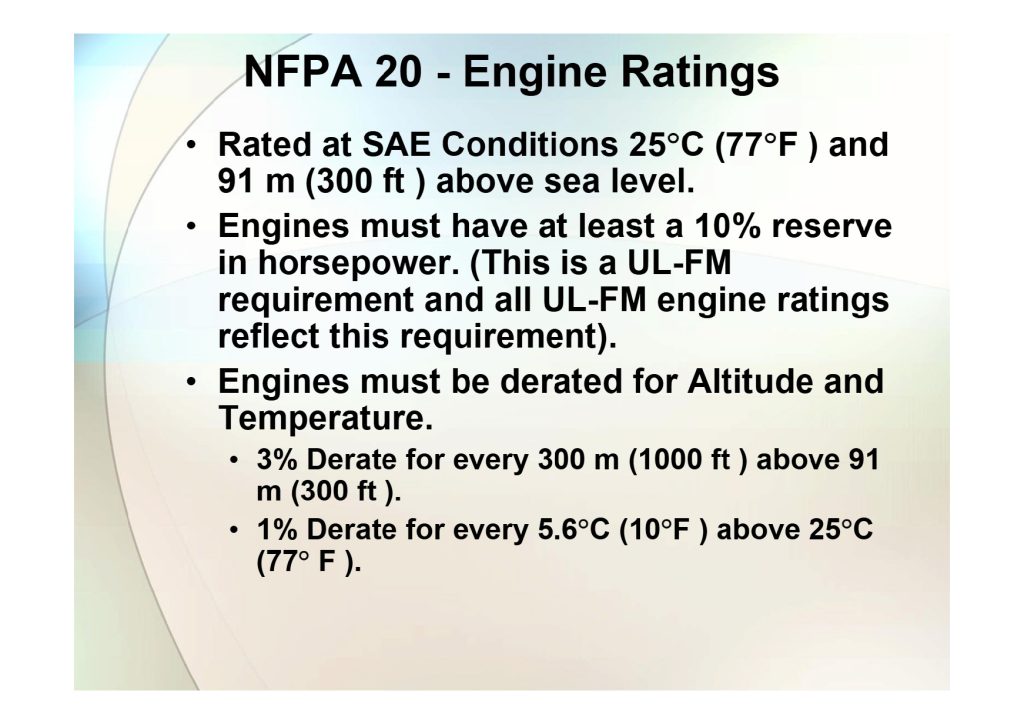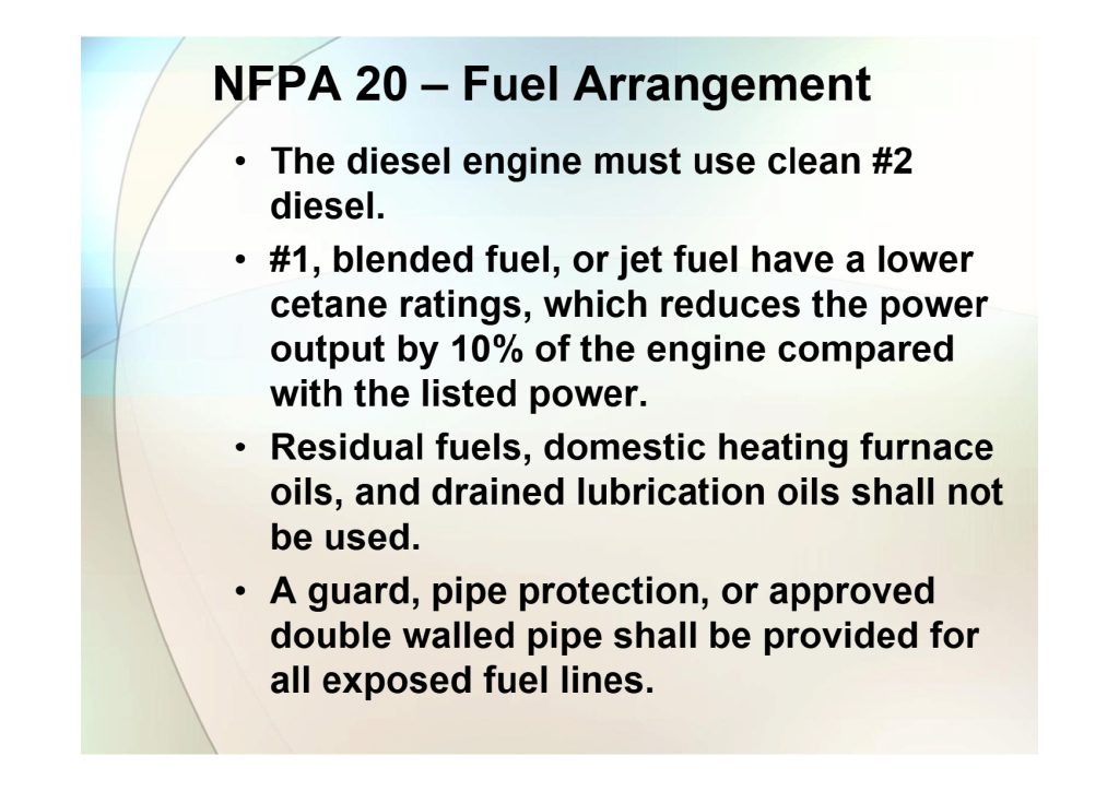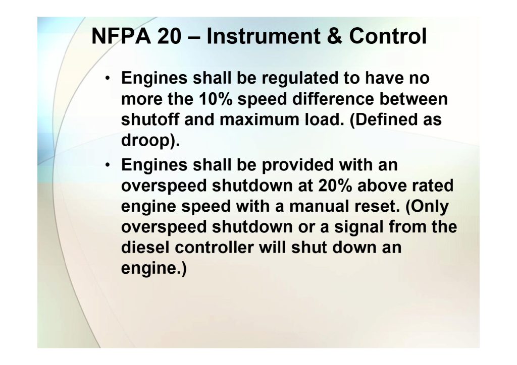 To comply with NFPA-20, diesel fire pump engines must meet: