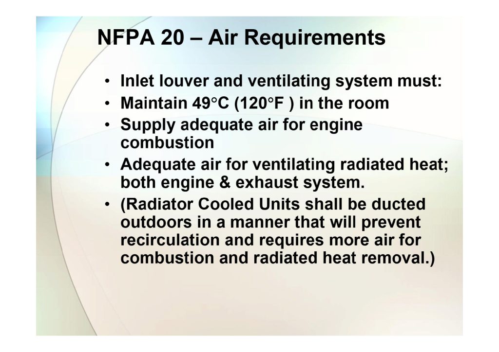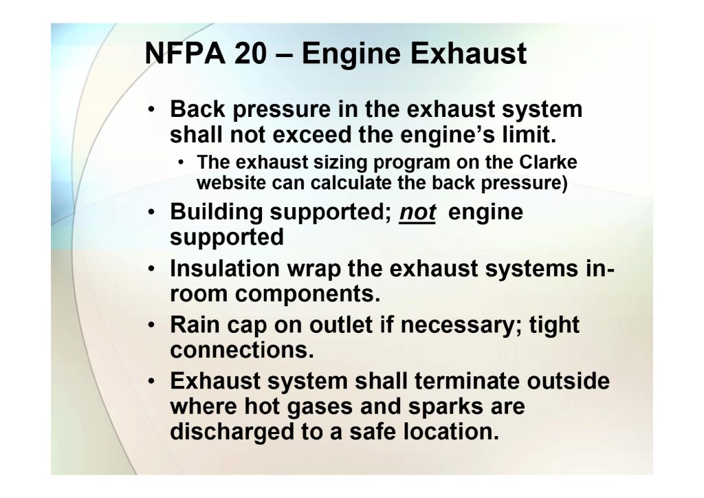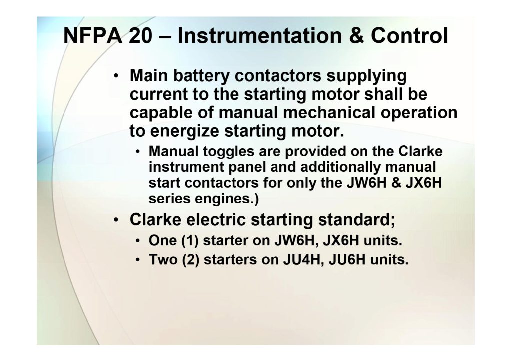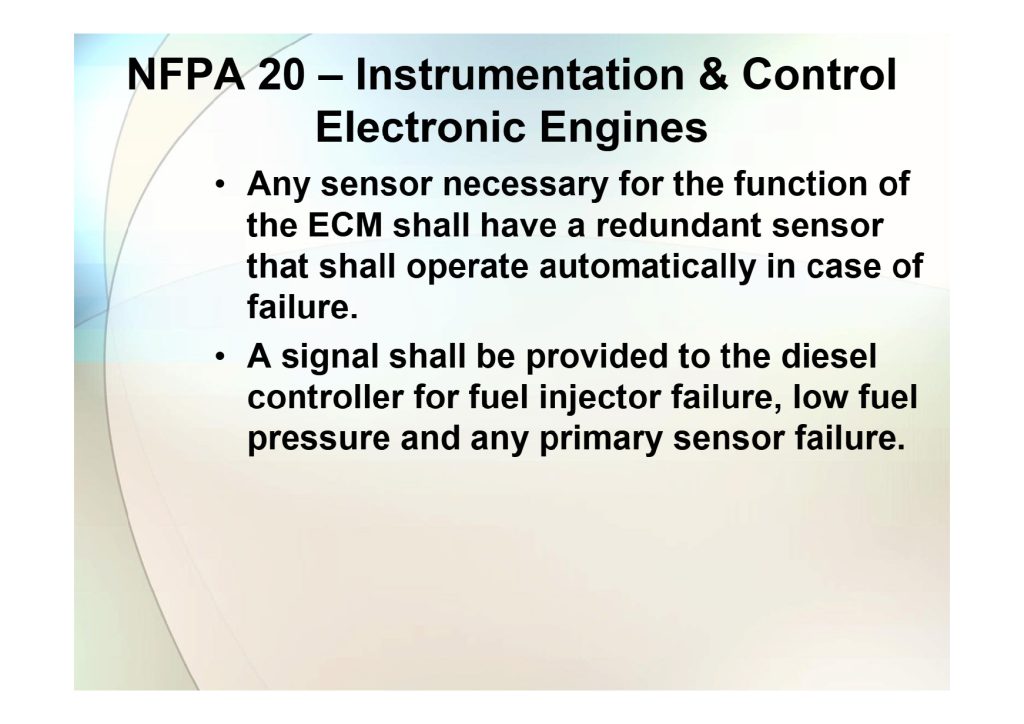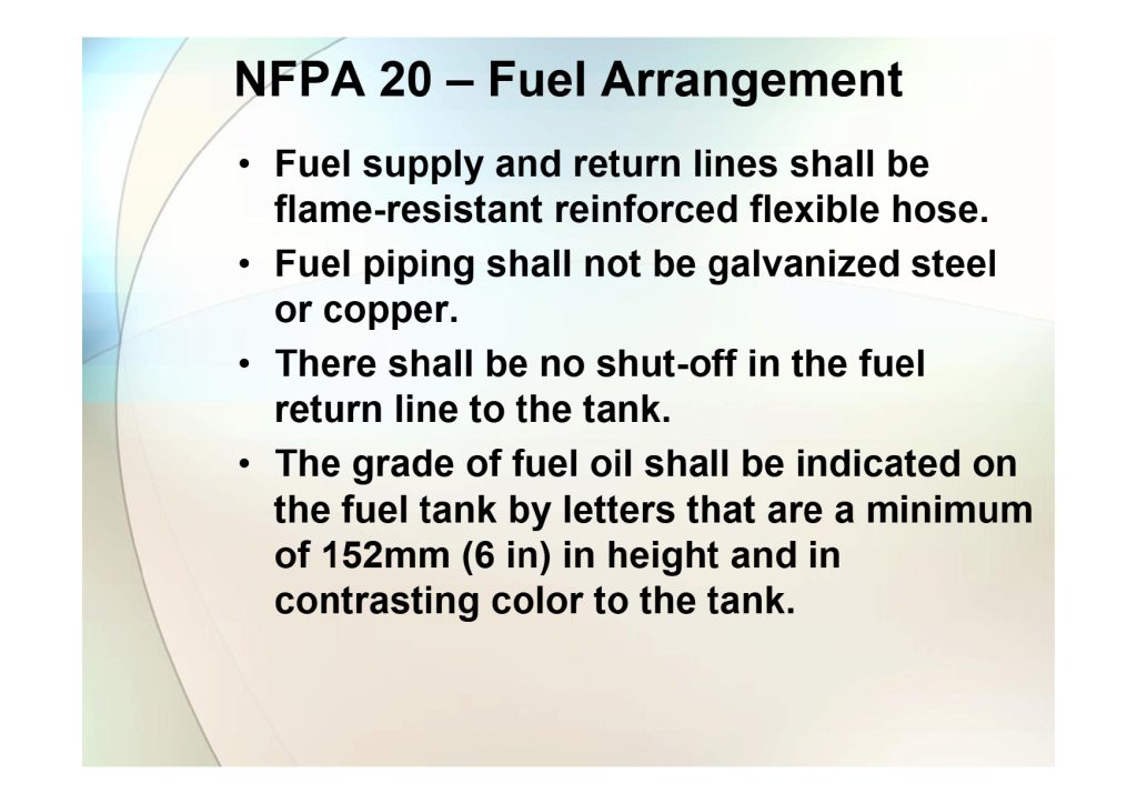 To comply with NFPA-20, diesel fire pump engines must meet: